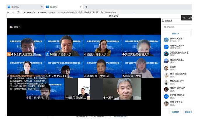 此次研讨会邀请了大连理工大学化学国家级实验示范中心潘玉珍副主任、厦门大学物理科学与技术学院教学指导委员会委员林昶旭老师、大连交通大学环境与化学工程学院傅杰副主任、陕西师范大学化学化工学院魏灵灵教授、beat365中国唯一官方网站娄振宁教授等五位长期从事化学专业一线本科教学的教师做大会报告。五位教师从线上教学、虚拟实验、混合教学、实践教学、实验自动化等方面为与会教师分享了在数字化背景下的丰富化学类混合教学经验和方法。